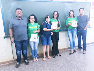 Entrega de Lembranças em forma de agradecimento, as estudantes do 3º Ano do Ensino Médio, que participam do Projeto de Monitoria juntamente com o Professor Aluisio. Na oportunidade, foram entregues exemplares da Apostila de Regras da Língua Portuguesa - produzidas por eles (estudantes do 3º Ano), com o uso da Sala de Tecnologia Educacional, demonstrando a importância e as vantagens para o processo de aprendizagem, da inserção dos recursos tecnológicos.